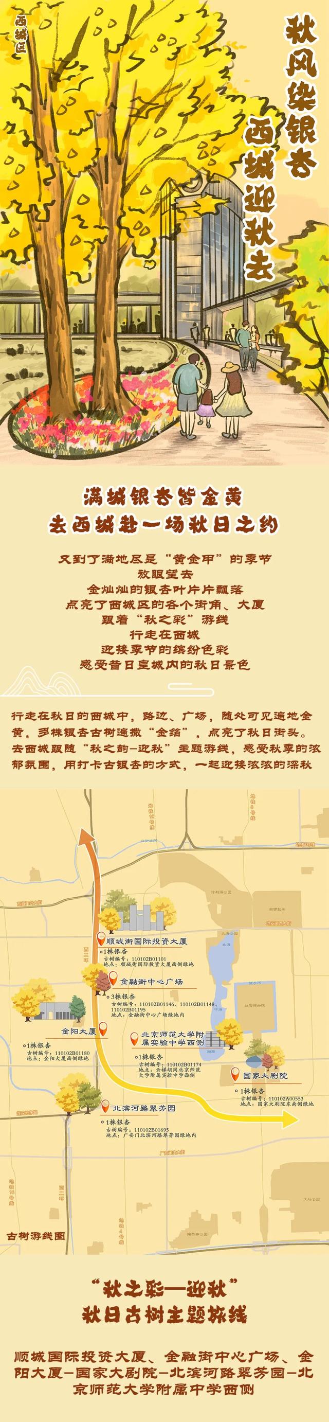 行走于西城区热闹的大街小巷,感受皇城中“满城银杏皆金黄”的秋意氛围,用打卡古银杏的方式,一起迎接璀璨的北平之秋。