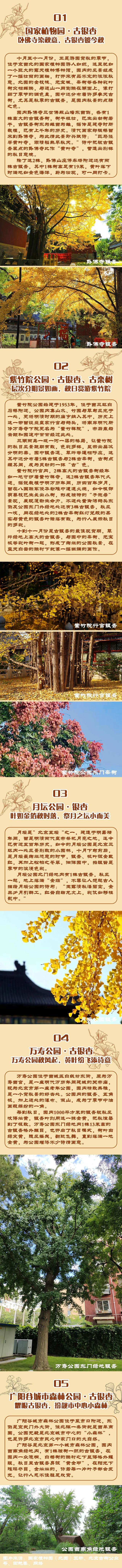 目前全市以秋季彩叶为主要特色的古树共有500余株,树种包括银杏、白蜡、元宝枫、黄连木、蒙古栎、麻栎、色木槭、枫杨等,其中古银杏的数量占到了约80%,500岁及以上的银杏就有30余株。