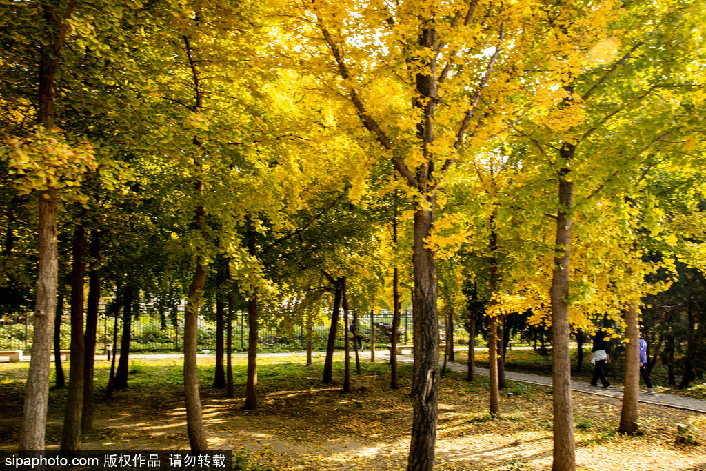 秋冬之交,圆明园内层林尽染,园中有不少的彩叶观赏树种,但唯有银杏,只用一种颜色便把秋意渲染到了极致。为了给游客营造更好的秋季景观,圆明园近年来实行落叶缓扫,留出彩叶观景区域供游客欣赏。秋风吹过,点点黄色叶片盘旋飘落,如同金色的地毯。目前,香山红叶、颐和园后溪河彩叶、圆明园银杏大道和天坛、北海菊花展都是游客赏秋打卡的热门景区。