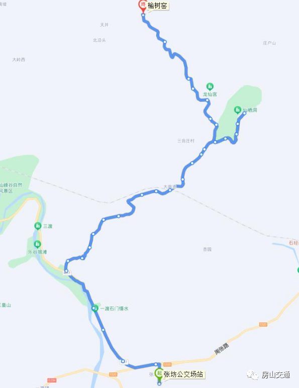 调整后首末站:张坊公交场站-榆树窑