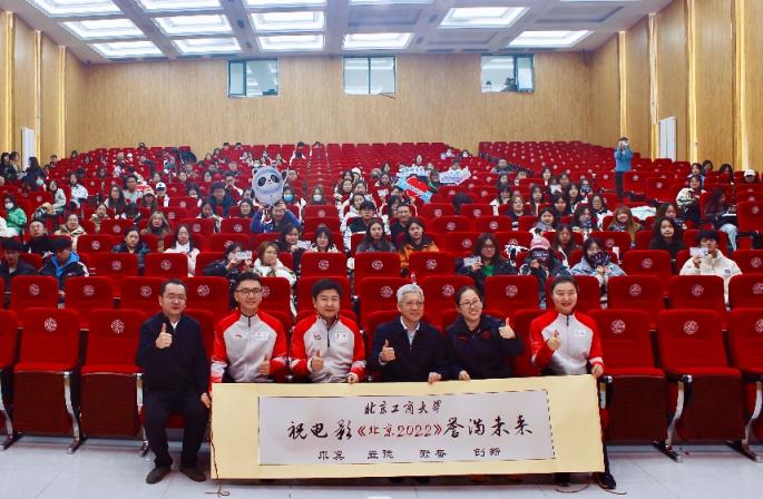 11月8日晚,“看冬奥电影,筑青春之梦”高校校园公益放映活动走进北京工商大学,师生们一起观看北京冬奥会官方电影《北京2022》,重温北京冬奥会的激情与感动。