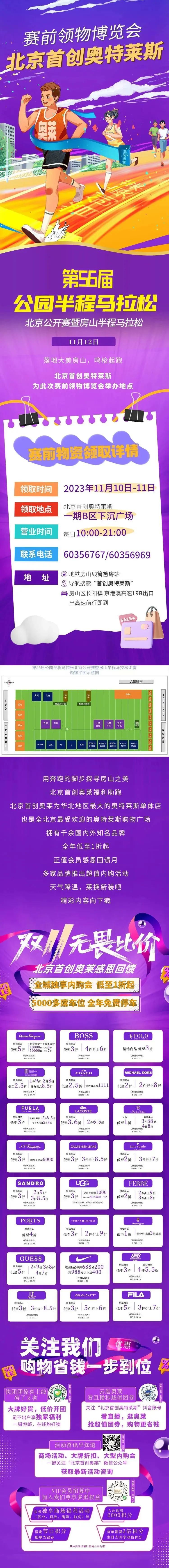 第56届公园半程马拉松北京公开赛暨房山半程马拉松即将正式鸣枪开跑,近期我们为大家介绍了周边的美景和美食,那要想购物该去哪里、又有哪些福利呢,下面就让我们一起来享受这场文旅体商深度融合的盛会吧~