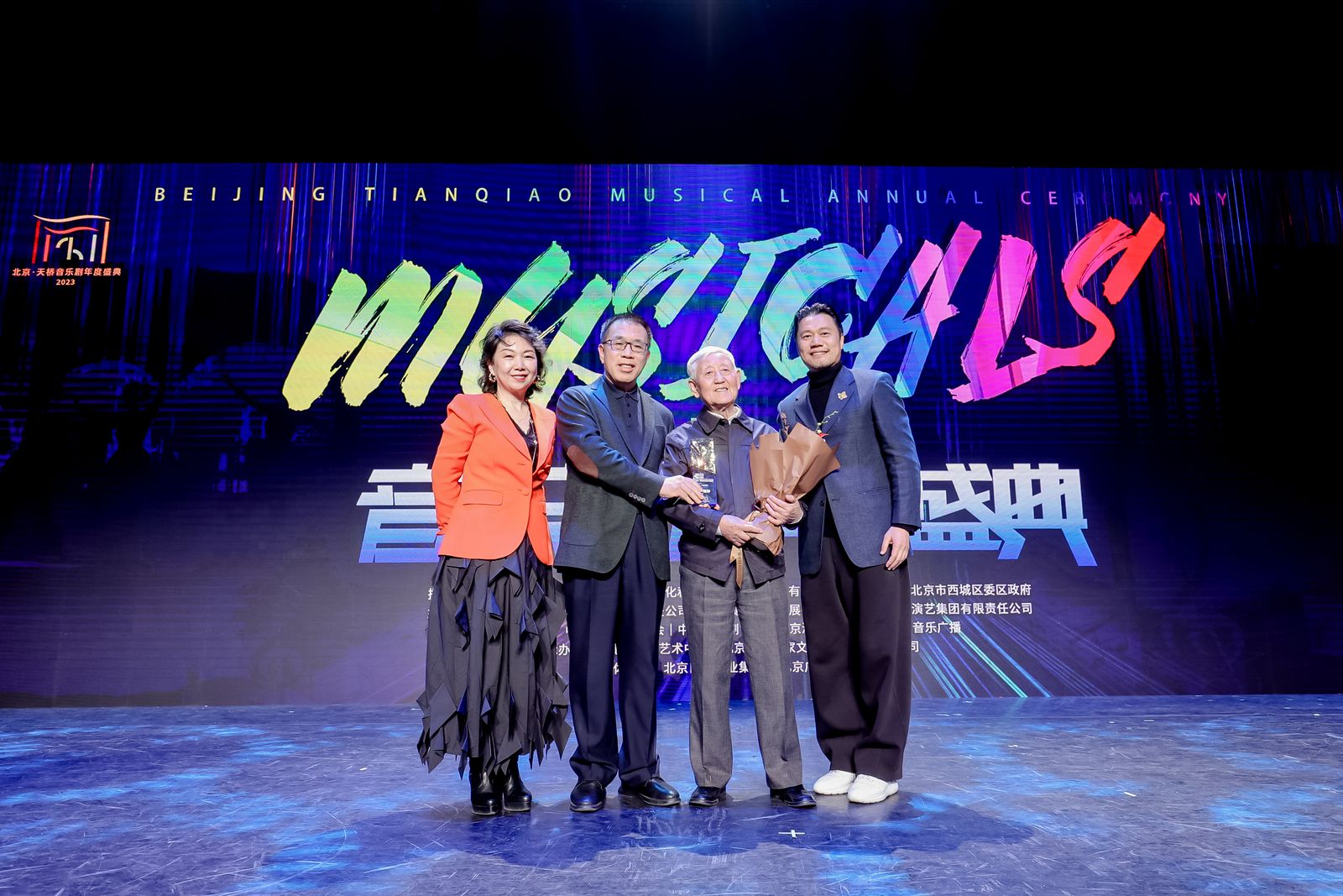 值得一提的是,本届盛典专门设置“特别贡献奖”,以表彰并感谢为中国音乐剧的奠基与发展做出突出贡献的人。王宁院长和2023北京·天桥音乐剧年度盛典推优活动总顾问、著名音乐剧制作人王翔浅一同为徐晓钟先生颁奖,嘉宾颁奖致辞中如是说:“……著名戏剧教育家、导演艺术家、中央戏剧学院教授、博士生导师徐晓钟先生桃李芬芳,他为中国音乐剧的推广和中国音乐剧人才的培养积累了大量的宝贵经验;寻根溯源,他是中国音乐剧的开拓者,为中国音乐剧事业的发展做出了卓越的贡献。”96岁的徐晓钟老师是中国音乐剧的开拓者,投身戏剧事业已有70余年,为中国音乐剧发展做出了卓越的贡献。当颁奖嘉宾念出徐晓钟名字的那一刻,全场掌声雷动,成为此次盛典最动人心的一幕。经久不息的掌声,是所有音乐剧人对“奉献和初心”的深刻赞许,以及对中国音乐剧美好未来的由衷希冀。