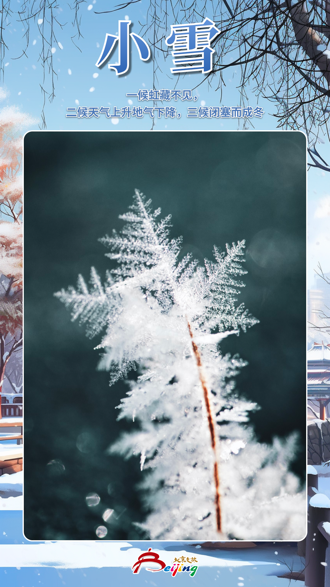 我国古人将小雪分为三候:一候虹藏不见;二候天气上升地气下降;三候闭塞而成冬。这一时节,彩虹藏起来没有踪影,天空中的阳气上升,地上的阴气下降,天地闭塞,转入严寒的冬天。