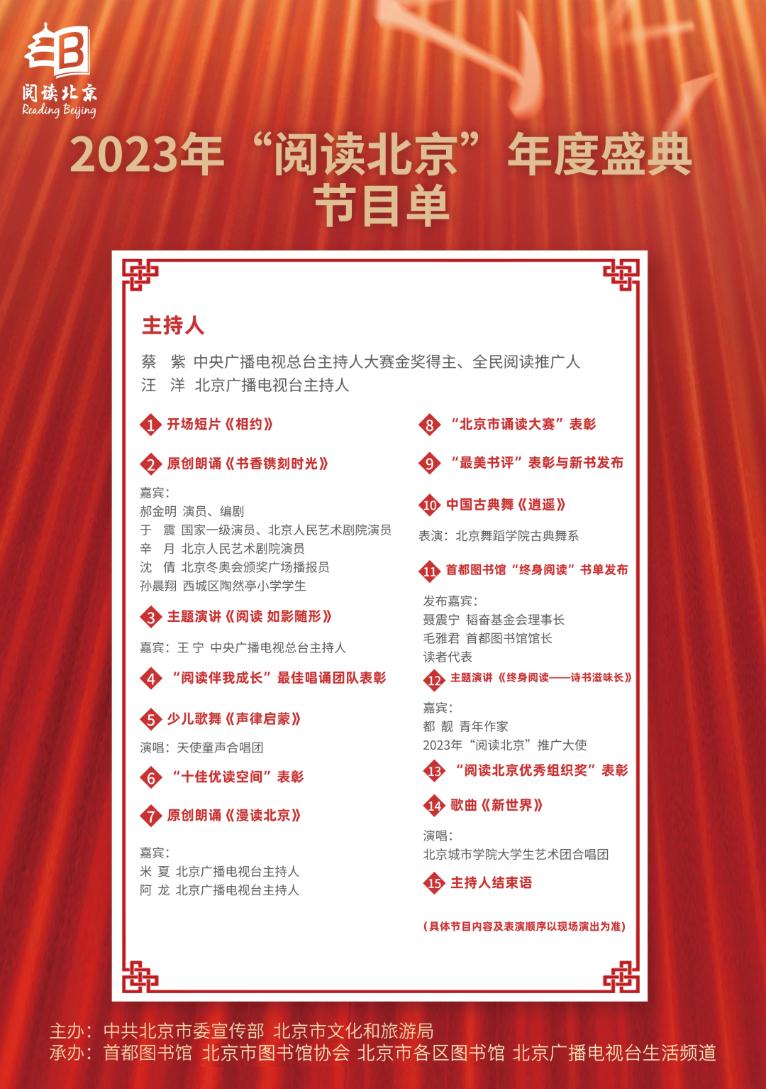 11月23日14时30分,2023年“阅读北京”年度盛典将至,期待您的加入。让我们一同走进书香的花园,品味阅读的美好,相聚云端,共襄盛会。
