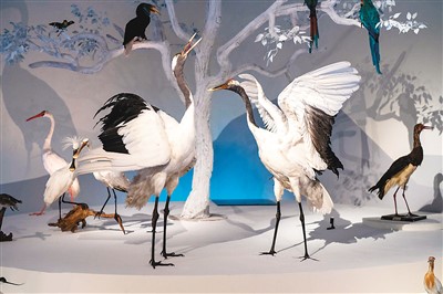 北极熊傲然站立在冰天雪地中,丹顶鹤展开翅膀引颈高歌,川金丝猴憨态可掬地立于枝头,狼群在月色下围攻天山马鹿……走进中国国家博物馆“共同家园——大自然的奇迹”展览现场,一件件动物标本陈列于精心设计的场景中,生动展现了自然界“万类霜天竞自由”的缤纷景象。
