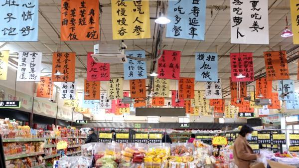 近日,北京房山区燕山地区的居民惊喜地发现,以前熟悉的东风菜市场大变样!一幅幅网感十足的书法作品悬挂在市场大厅,吸引了一大波眼球。随处可见的书法作品,不仅将菜市场装扮一新,还让正在售卖的肉蛋果蔬瞬间拥有了有趣的灵魂,行走其中,有种烟火气里生长出的艺术感。这正是东风菜市场经过60多天精心打造的“食全食美”书法主题菜市场。一起去现场看看吧!