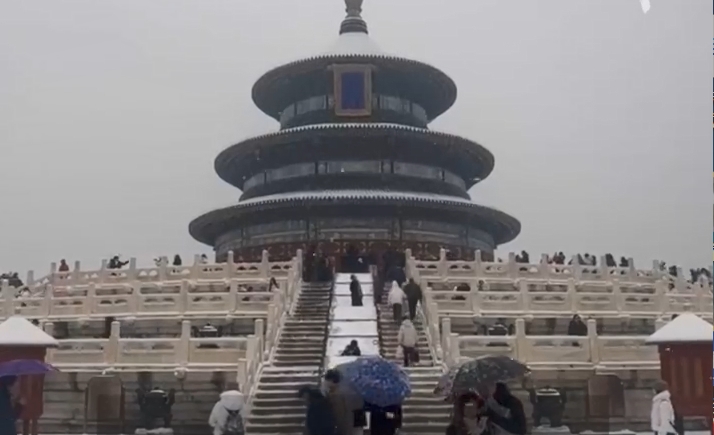 12月13日,今冬北京第二场雪又如约而至。市民游客兴致盎然,在天坛公园欣赏古建雪景。