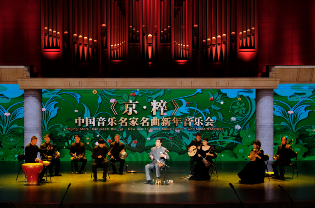 本场演出以《京·粹》系列短视频素材为基础进行现场舞美再次创作,现场演奏与视频画面相互呼应,呈现了一场情景交融、中西合璧的新年音乐会,让观众现场感受到了视听结合的双重震撼。三弦演奏家赵承伟、京胡演奏家艾兵、古琴艺术家王鹏、琵琶演奏家章红艳、古筝演奏家王中山、昆曲表演艺术家魏春荣、笛箫演奏家张健、青年京剧演员白金、青年竹笛演奏家冯天石、青年筝乐演奏者伍君瑜、青年箫演奏者刘小冈、青年长笛演奏者车嘉芸、青年钢琴演奏者毕云飞共同联袂,从中国古曲到民间小调,从国韵华章到大美昆曲,每一段舞台呈现都镶嵌在沉浸式的舞美设计中,营造出极具东方魅力的美学意境。观众不仅能听到沁人心脾的灵动乐音,更能通过大屏幕的优美画面观赏到存有中国明代壁画之最的法海寺,巍峨壮阔的世界文化遗产——长城,中国古代文化和教育重要象征的孔庙和国子监,中国保存最完整的皇家行宫御苑——颐和园,现存最大的古代祭祀性建筑群——天坛,同时也能欣赏到具有百年历史的吉祥大戏院、中国最古老的纯木结构戏楼——正乙祠等北京“小而精、雅而美”的戏曲空间等。现场的外籍观众表示这场情景交融的音乐会是了解中国传统音乐和历史的良机。“这是听觉视觉的双重享受,比单纯的听音乐会更丰富,舞台配色大气,古典乐器的柔美音乐与背景效果搭配得很不错!非常享受!”