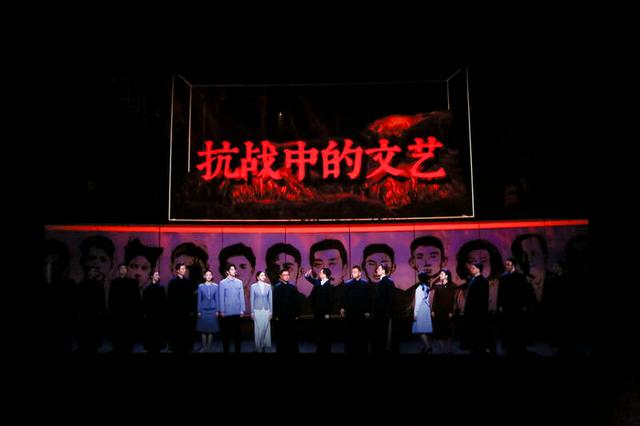 文献话剧《抗战中的文艺》再现了抗战岁月中,文艺工作者面对国破家亡,不断求索奋斗,以文艺作品唤醒民众的历史。在打造线下演出的同时,《抗战中的文艺》同步开启线上演播,打破时空限制,通过数字化、影视化拍摄手法,展现科技与艺术结合的新成果。中国国家话剧院院长田沁鑫说,希望以戏剧电影的方式讲好中国故事,打造国有文艺院团现代化、数字化、赋能化发展运营新模式,助力社会主义文化强国建设。