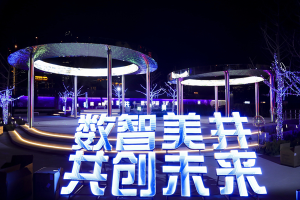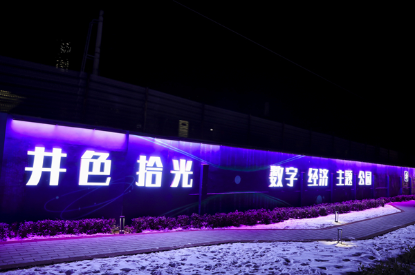 围绕在“双井之光”周围的,是以“数智美井 共创未来”为主题的标识装置。绿篱花池中闪烁着激光成像效果的“井井有条、美美与共、欣欣向荣”立体文字,再配合周围一系列冬至主题美景不断变换,让居民在不夜双井中体验光影魅力和科技氛围。不远处一面象征着数字科技的星云和“井色拾光·数字经济主题公园”发光主题字背景墙灵动跳跃、荧光闪闪带给人无穷无尽的想象。