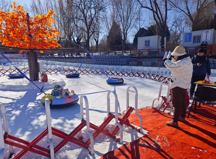 “真不错,家门口就有冰雪节,溜达着就过来了。像雪橇、雪上飞碟、雪地挖掘机都特别适合孩子玩。”趁着工作日人不多,晏大妈特意带着3岁的孙女妙妙来玩雪,一上午,孩子玩得不亦乐乎。“像是雪地上的过山车,滑下去那一刻仿佛起飞了,刺激又带感!”坐上雪圈,胡女士从雪道顶端一路滑行,冲出去十几米远。胡女士感慨:“玩着玩着,就想起了小时候在雪地里撒欢的景象。赏冰玩雪不必去郊区,市区公园里的冰雪项目也能感受独特的冬日乐趣。”工作人员介绍,这是柳荫公园第一次举办冰雪嘉年华,别看工作日人不算多,节假日和周末可热闹了,等着玩的队伍能排出好几十米。