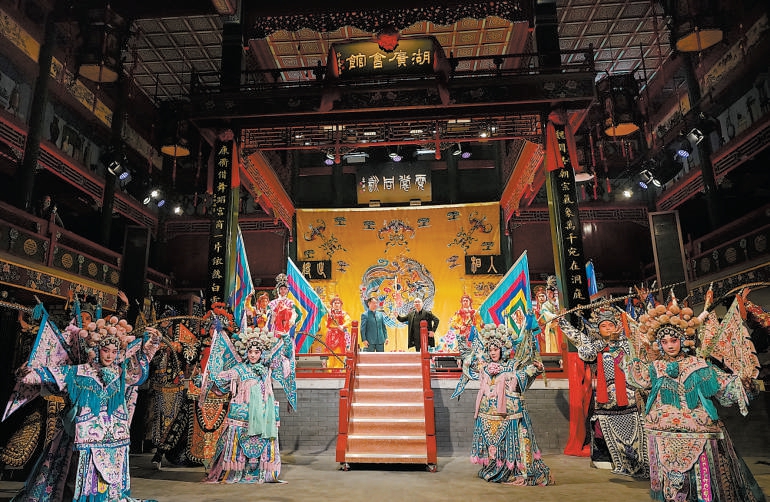 除传统舞台表演之外,天桥盛世集团深挖湖广会馆的历史文脉,将国粹京剧艺术与200多年的湖广会馆生动结合,打造“三台两院”演艺新空间,将舞台延伸到后台、戏台、观众席和两处庭院,融戏于景,戏景相融,擦亮“会馆有戏”文化金名片。