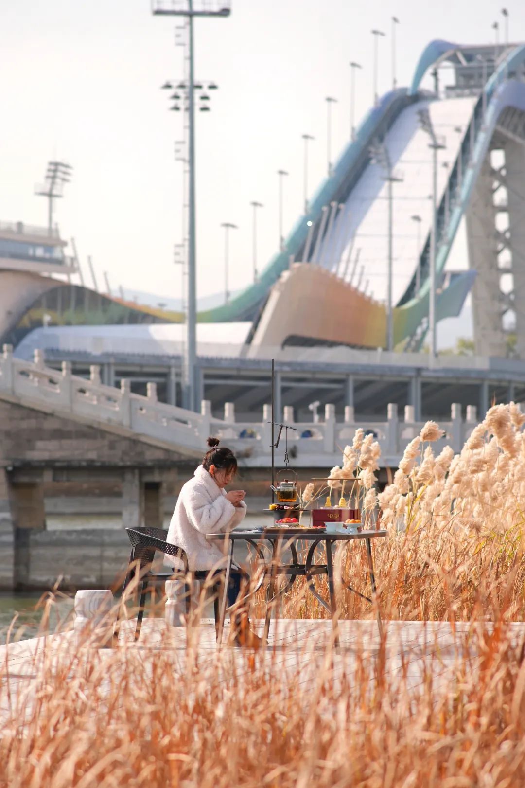 听说首钢园群明湖夏宫咖啡,也顺应季节和潮流变化推出了围炉煮茶以及季节限定饮食。为了感受围炉煮茶的魅力,文旅君来到此处,与苏店长一起,在群明湖围炉煮茶,聊聊关于生活和饮食的那些事。