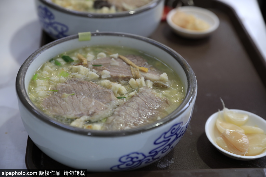 在陕西,以羊肉泡馍为代表的美食可谓冬季首选。羊肉泡馍是一道将羊肉、馍片等食材放入滚烫的羊汤中烫熟,再淋上浓郁的羊肉汤汁而成的美味,既具有浓郁的羊肉香味,又能很好地温暖身体。在陕北部分地区,羊肉饺子和羊肉饸饹是节气美食。