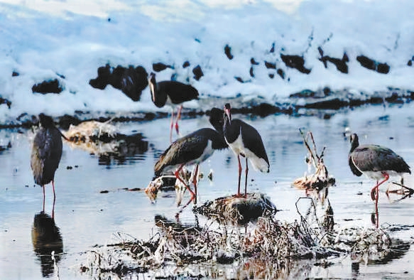 本报讯(记者 陈强)摄影爱好者近日在长沟湿地拍摄到了10多只国家一级保护动物黑鹳。这是房山区长沟镇首次发现有黑鹳越冬,说明黑鹳在本市的栖息地正在不断扩大。
