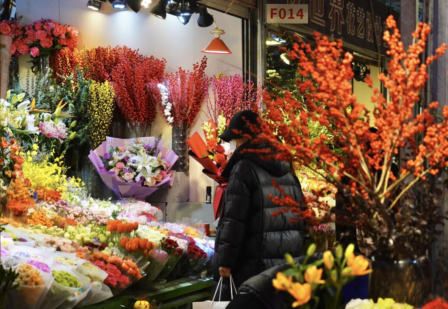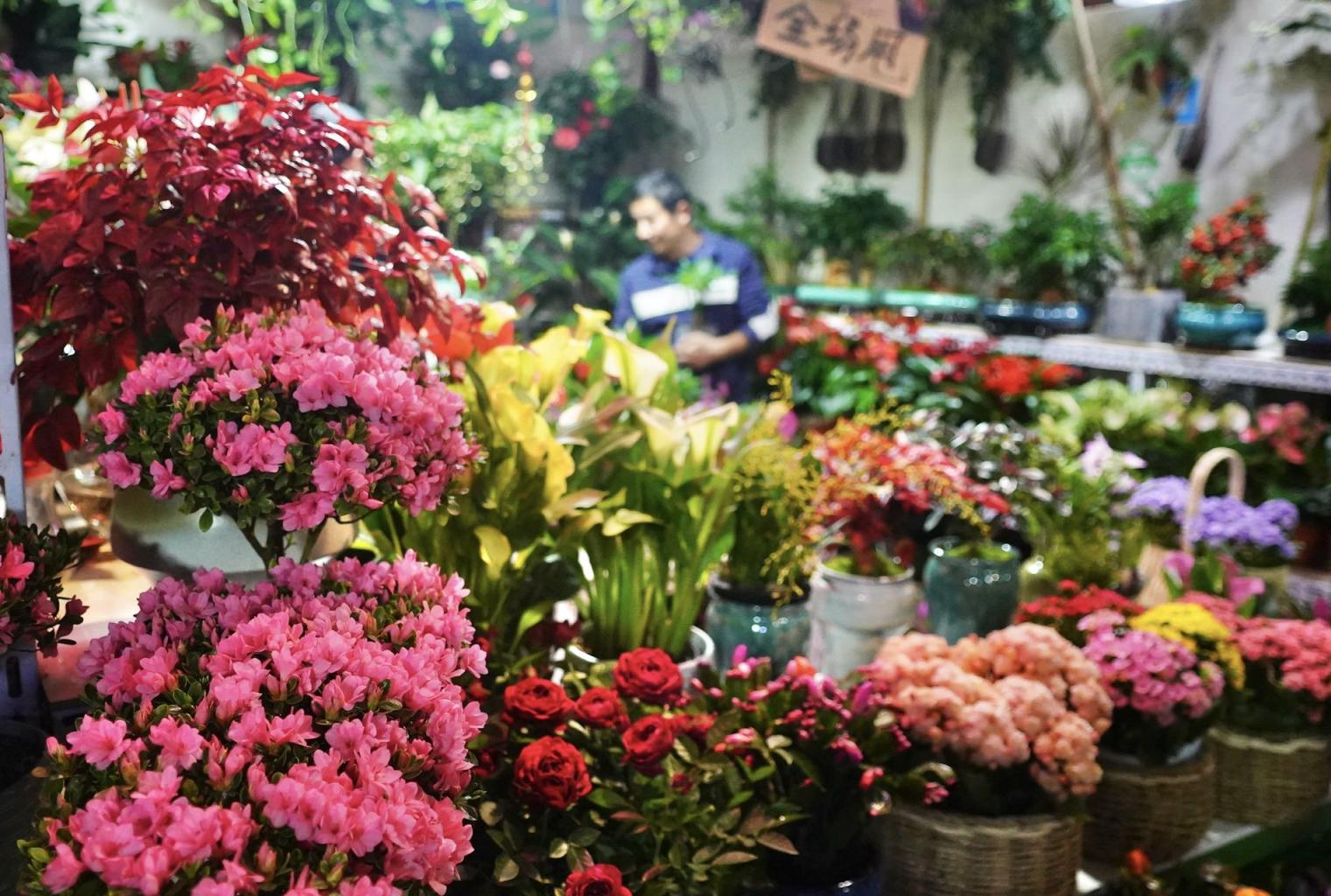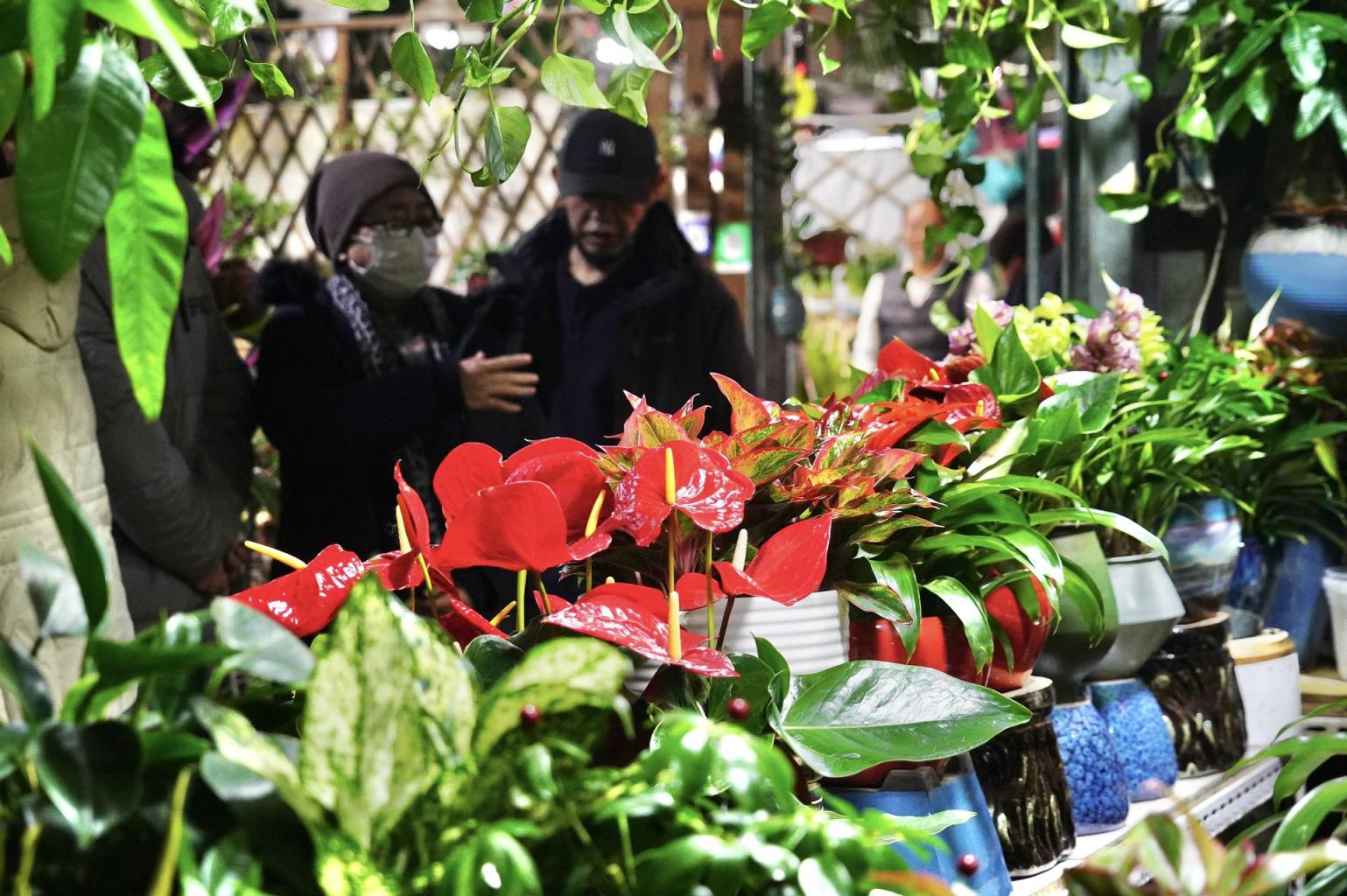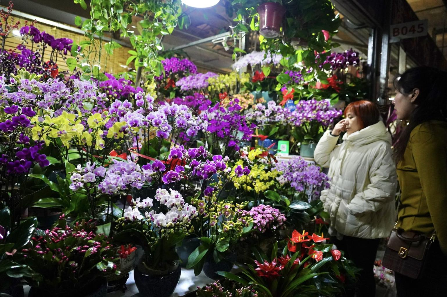 1月15日,北京朝来春花卉市场10000平方米的大厅中,蝴蝶兰等年宵花卉以及发财竹绿植、盆景等琳琅满目,营造出一片春意盎然。