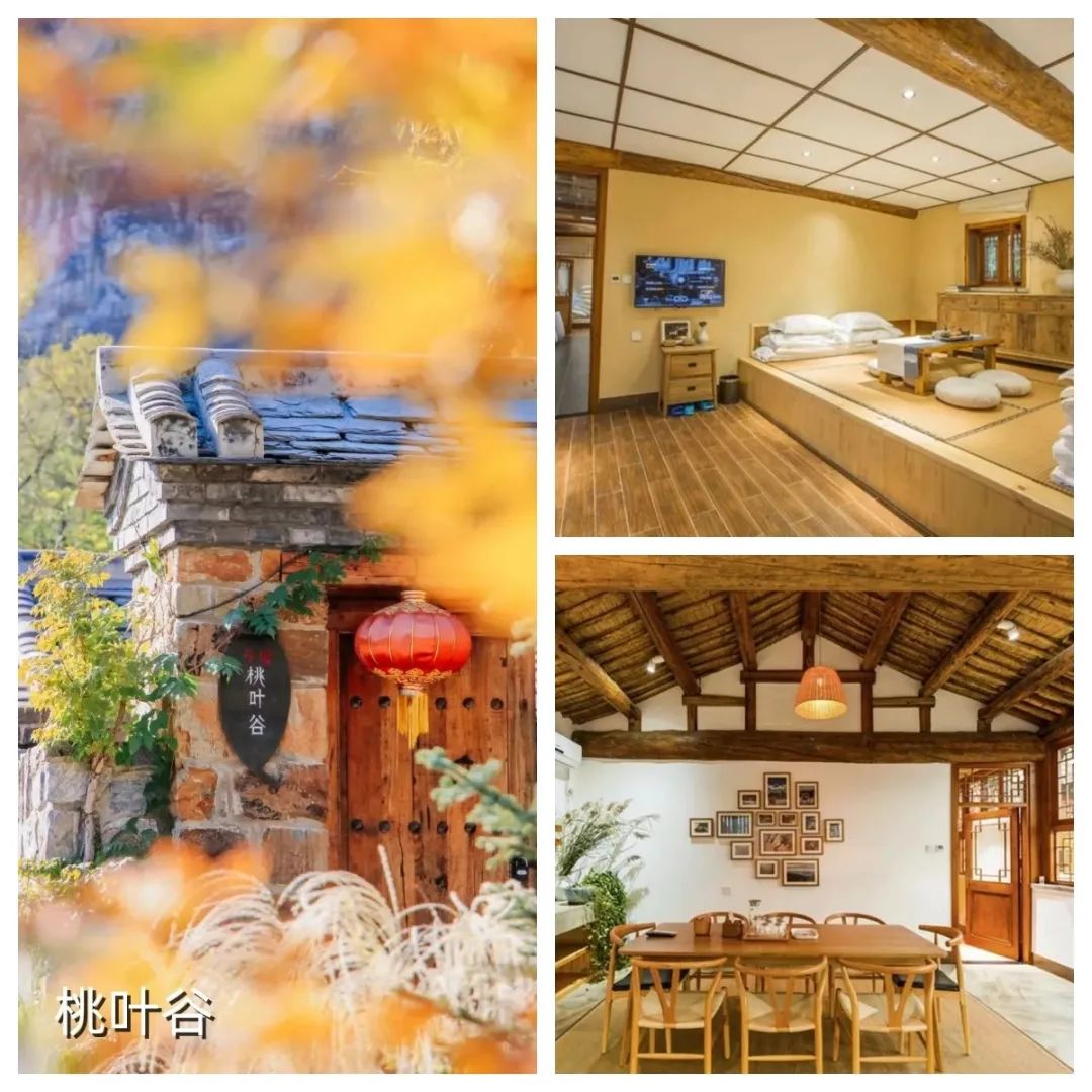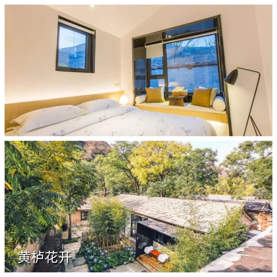 “黄栌花开”窗明几净,红砖灰窗,走进小院,一眼可以看见房间内简约天然的陈设,走进房间,温暖的空气扑面而来,窗外或是青翠的竹林,或是起伏的山脉,日光透过树影斑驳地洒落在房间里,院外的景色和房间内的陈设相互呼应,仿佛住在小院里也住在自然里。