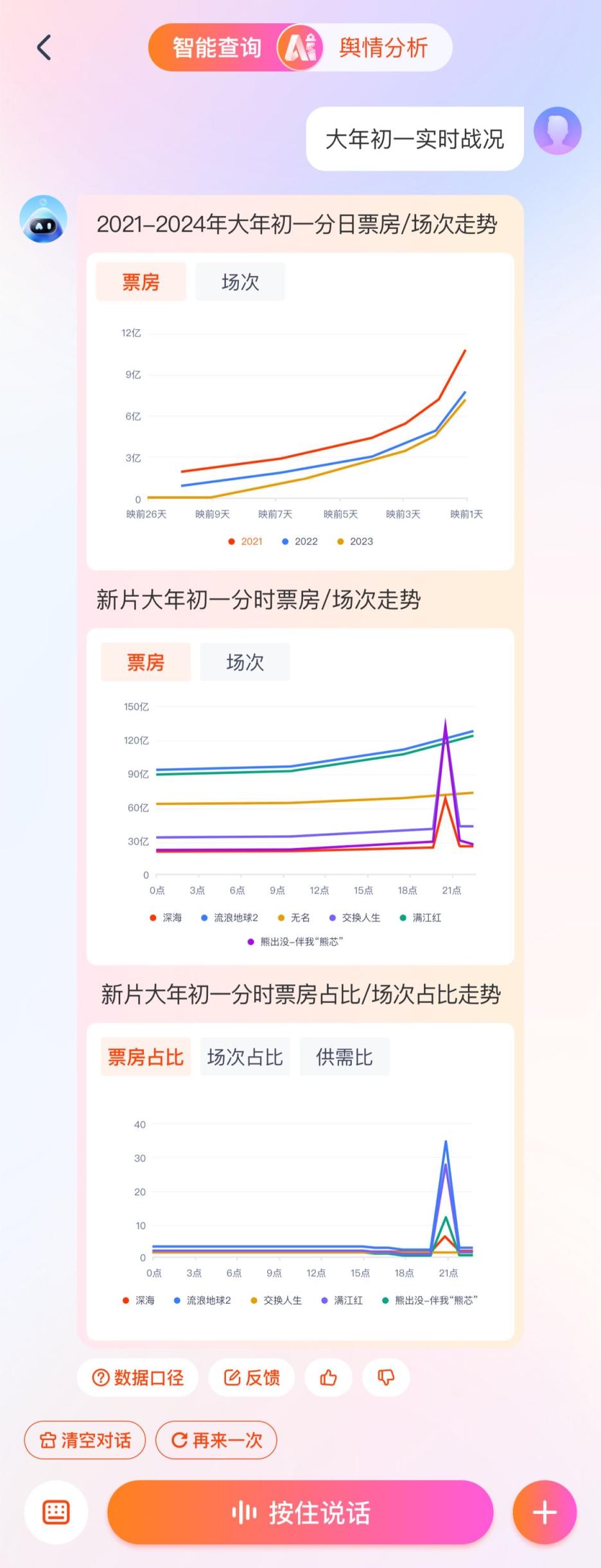 当下中国电影市场环境变化迅速,用户对于内容的需求与审美日趋多元化。据悉,面对竞争更加激烈的春节档,“灯塔专业版”全新升级、上新更多AI功能,灯塔AI将以票房为圆心,从预测、预售、票冠地图三大维度升级智能查询的相关功能,以数智化服务满足电影行业对票房预测、数据查询、口碑及舆情管理等方面的需求。