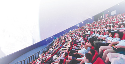 学生们在河南省科技馆“科学之夜”活动中观看球幕电影。新华社记者 张浩然摄