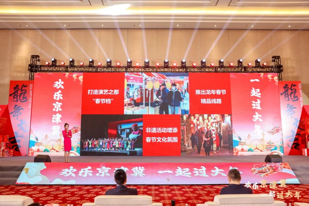 北京市文化和旅游局党组成员、副局长刘斌在致辞中表示,北京市文化和旅游局精心准备了丰富多样的文旅“大餐”,比如依托北京城市副中心三大建筑(北京城市图书馆、北京大运河博物馆、北京艺术中心)和冬奥场馆等地标性建筑,推出溜冰滑雪、品读建筑、寻梅赏樱、工业遗产四大主题10条精品线路。推出系列龙主题文创产品、重点景区10个新款“北京礼物”和“龙墩墩”等“佳节好礼”,让游客留下更好的游览记忆。北京将与天津、河北两地一道,深入挖掘文旅协作潜力、丰富文旅协作内容、创新文旅协作方式,不断推动三地文化和旅游协同发展向更高水平、更深层次、更宽领域发展。