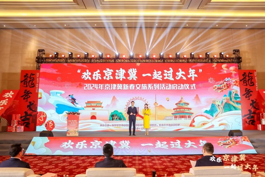 年味京津冀,三地一家亲。为进一步推动京津冀协同发展走深走实行动见行见效,充分发挥文旅在营造喜庆氛围、拉动经济消费、促进社会和谐、提升人民群众幸福感获得感方面的独特优势,经北京市文化和旅游局、天津市文化和旅游局、河北省文化和旅游厅三地联合谋划,1月31日,“欢乐京津冀,一起过大年”2024京津冀新春文旅系列活动启动仪式在天津圆满举行,京津冀三地文化和旅游部门负责同志、天津相关委办局和各区文旅部门、媒体记者及企业代表等嘉宾出席了本次活动。