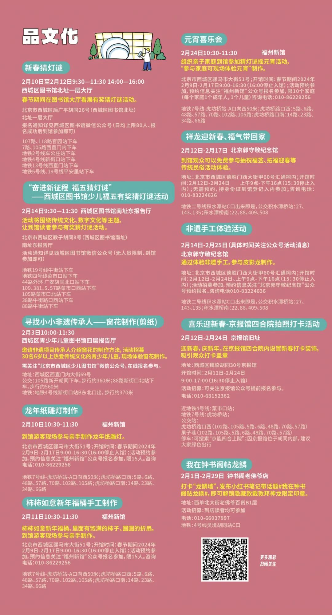龙舞四海辞旧岁,福临万家贺新春。春节将至,西城区文化和旅游局诚邀您“逛庙会、享畅游、尝美食、乐体验、赏大戏、品文化”!六大类别、百余项活动为您献上内容丰富、形式多样的新春文化盛宴。您还可扫描二维码,查看更多春节期间活动信息。
