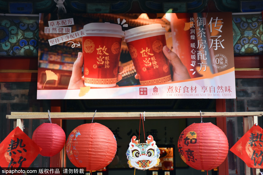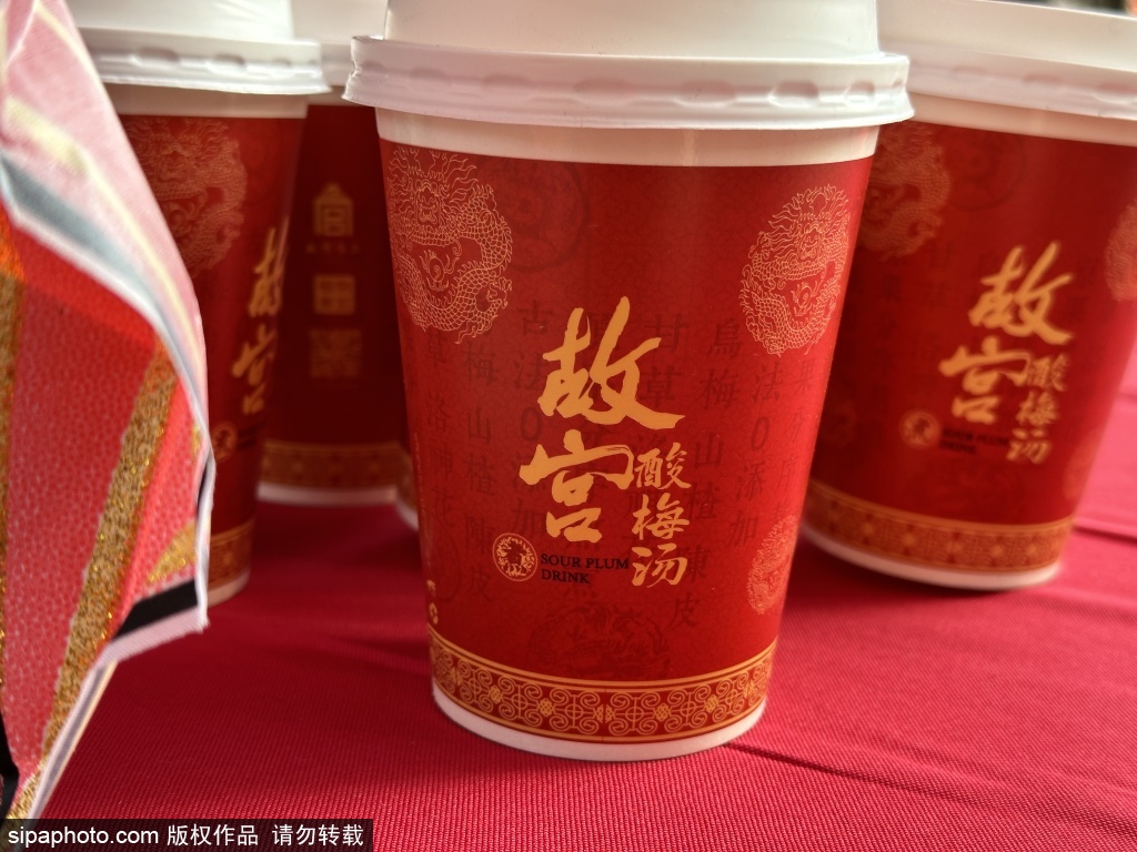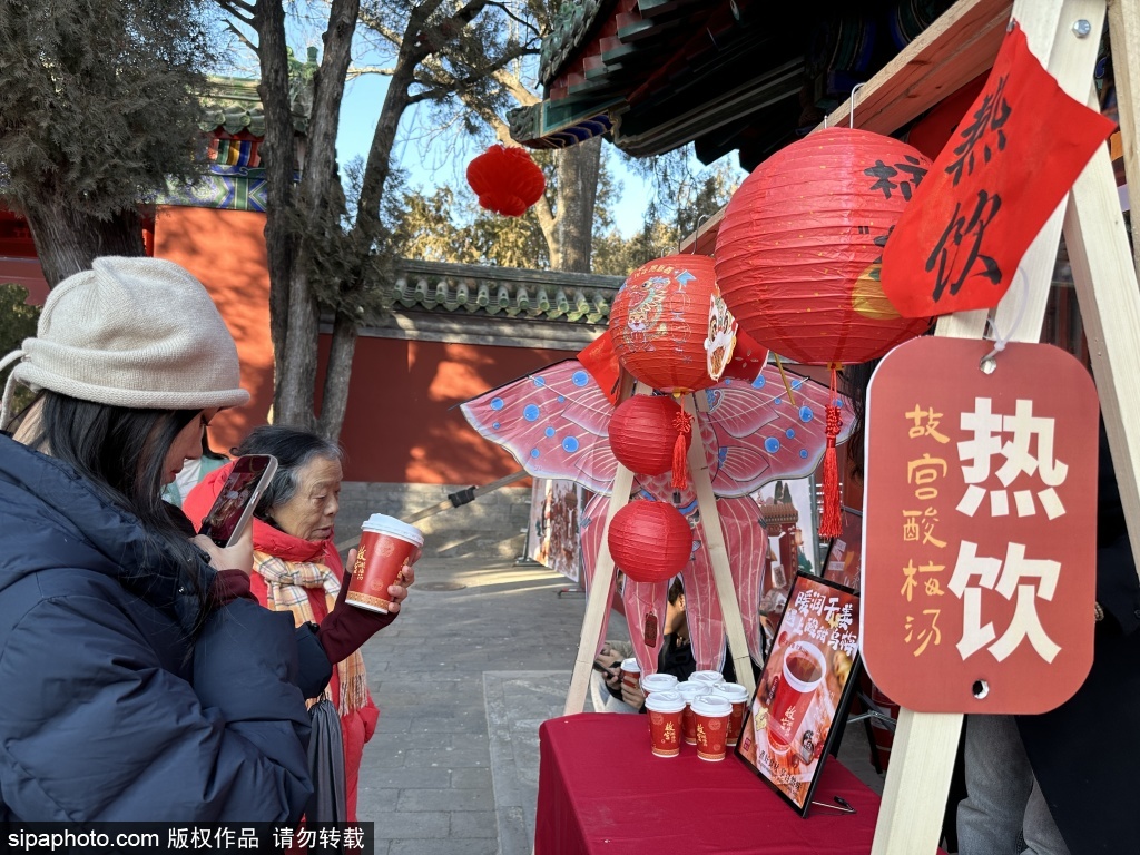 近日,故宫酸梅汤亮相地坛公园庙会,吸引众多游客前来品尝。