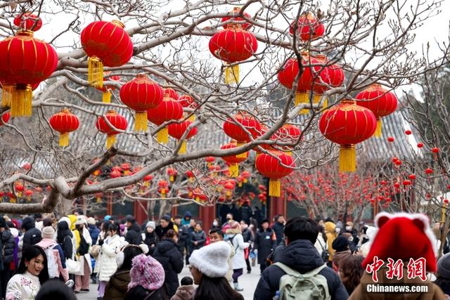 2月6日,北京。大观园、琉璃厂、龙潭湖公园、地坛公园大红灯笼挂起,春节庙会装饰令景区年味十足。今年春节期间,北京将以“福满京城 春贺神州”为主题,举办各类文化活动近万场。据悉,地坛、龙潭、厂甸、大观园、石景山游乐园、八大处等传统庙会全面恢复。