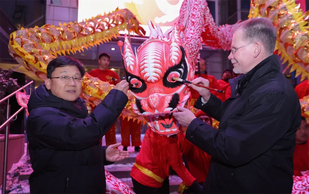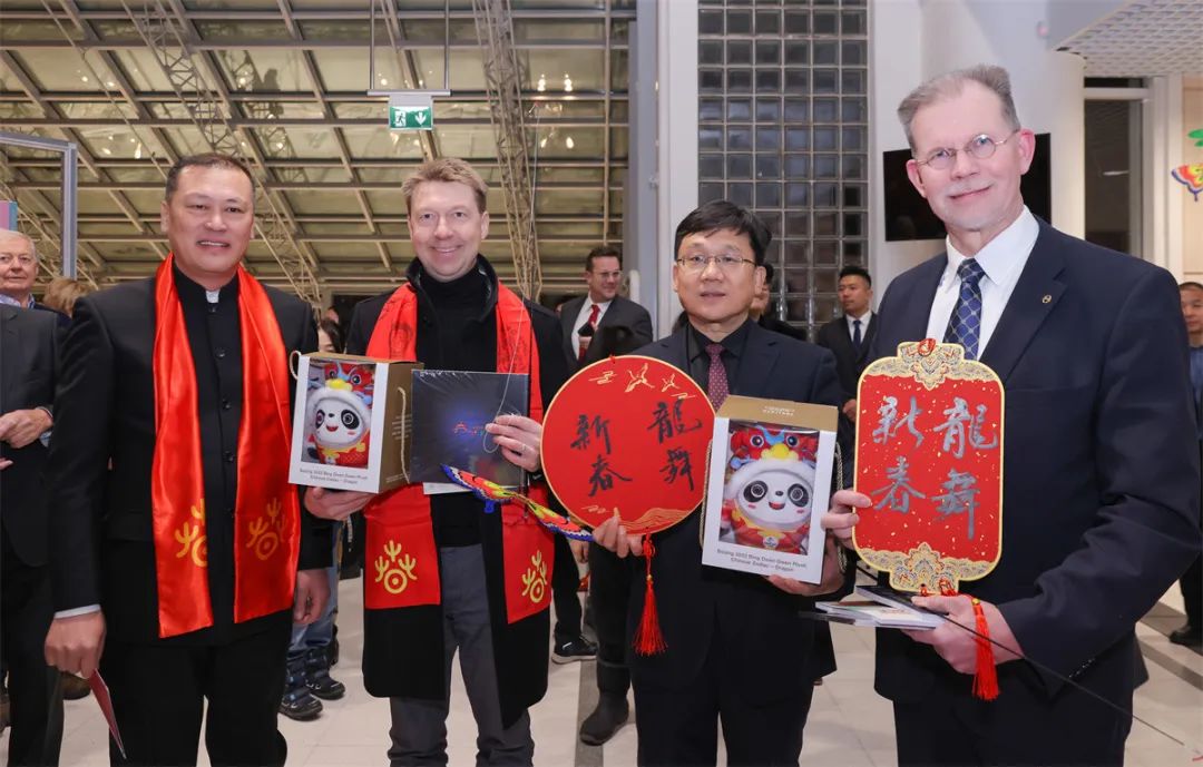 2月7日,“欢乐春节”活动首次登陆芬兰第二大都市、北欧最大的内陆城市坦佩雷。中国驻芬兰大使王同庆、坦佩雷市长库莫拉(Kummola)、副市长赫里默(Helimo)、北京市文化和旅游局二级巡视员常林等嘉宾与众多民众齐聚坦佩雷大厦外,为中芬两条祥龙点睛。伴随着铿锵有力的锣鼓声,北京顺元祥舞龙队的金龙气势磅礴,芬兰舞龙舞狮俱乐部的红龙上下翻飞,中芬舞龙交流合作再创新篇章。