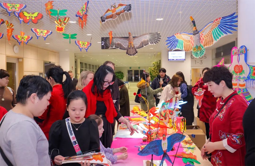 坦佩雷大厦内,市民被“你好,北京”摄影展中既古老又摩登的北京城所吸引,“全球吉庆生肖大赛”成果展前也汇聚了一大批喜爱生肖文化的“粉丝”;“灯彩”和“风筝”两个非遗项目更是受到追捧,在赞叹北京灯彩的美轮美奂和沙燕风筝的飘逸优雅之余,观众们也亲自上手、体验制作龙灯彩和龙风筝;北京入境游推介展台前异常火爆,除了竞相收集旅游手册外,北京市海外文化交流中心设计制作的龙年文创礼物也被一抢而空。