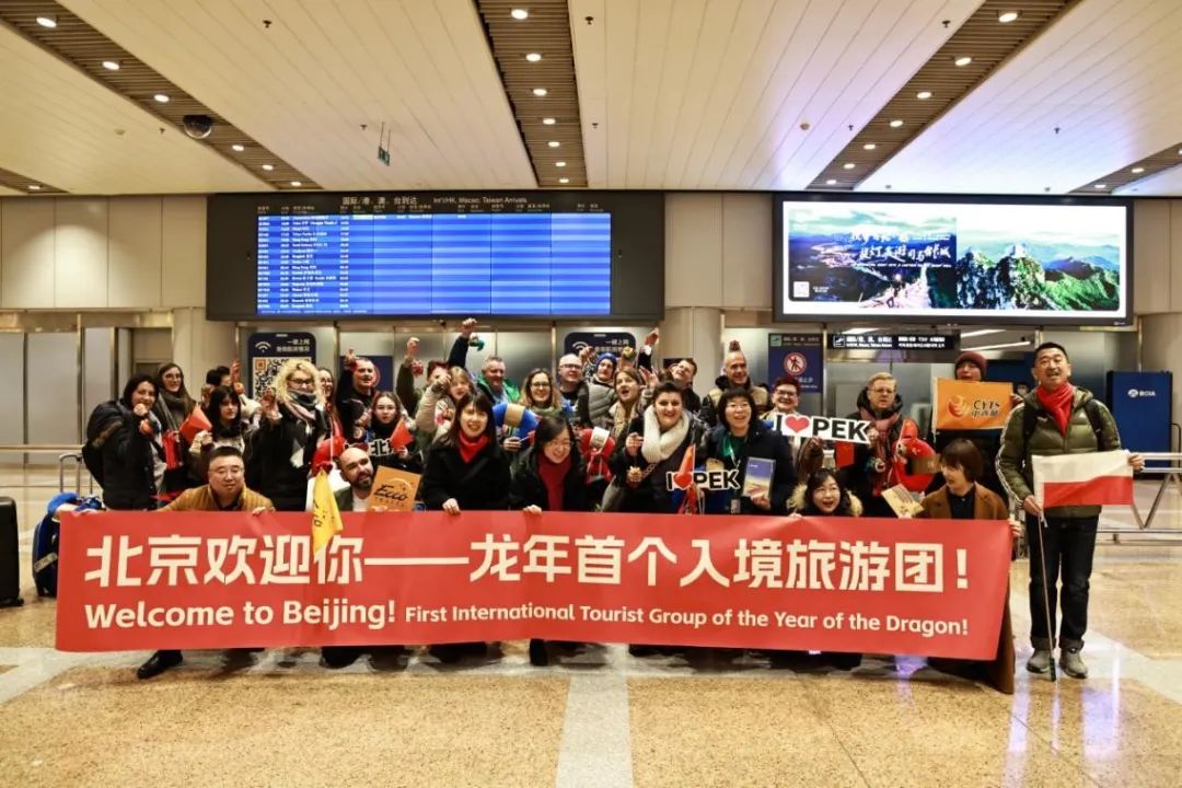 甲辰龙年大年初一,北京喜迎新春首批入境旅游团来京过春节。11时许,来自波兰的21名游客抵达首都国际机场。