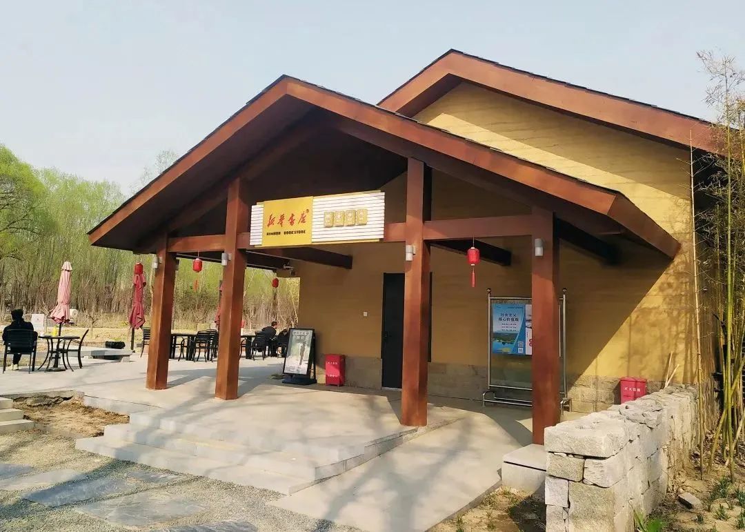 走进北京温榆河公园顺义区段,穿过青石小径,一家原木色基调的书店便映入眼帘,这就是新华书店温榆河田园店(以下简称“田园店”),它曾因“玻璃幕墙”“小熊奶茶”“温榆河日出”等登上了“2022北京网红打卡地推荐榜单”。