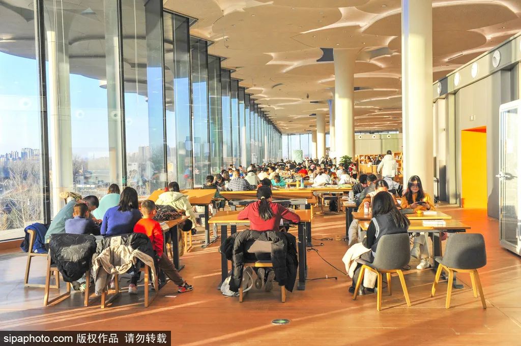 北京城市图书馆位于副中心城市绿心森林公园起步区,又称“森林书苑”。馆内两座书山宏大绵延,兼具大空间与小场景,打造出阅读雅韵。