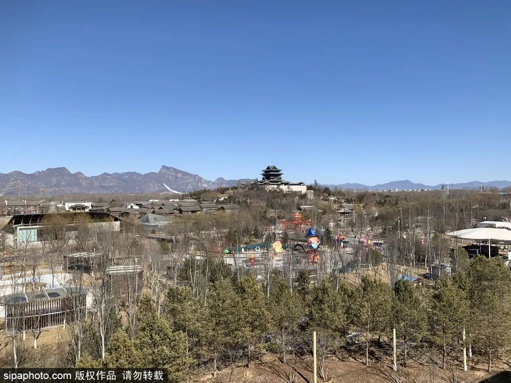 北侧露台是北京世园公园的一处室外观景位,在此可览世园会的全貌,远眺北侧海陀山连绵山景和妫河水两岸的自然风光,诗意就在眼前。