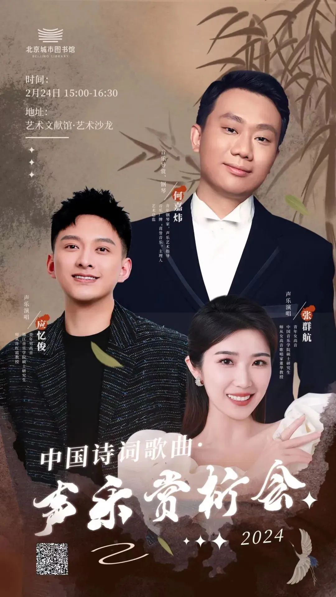 北京城市图书馆将举办“中国诗词歌曲声乐赏析会”,展现声音艺术与民族文化的相互交融。
