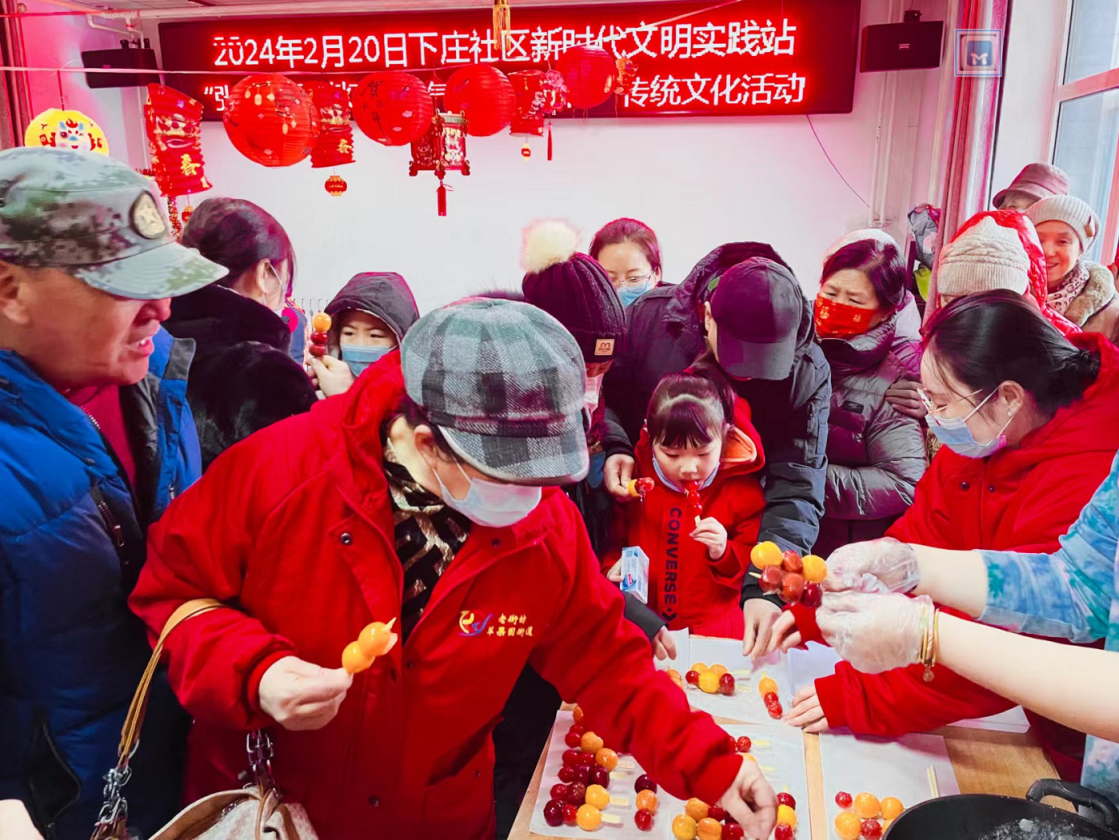 2月21日,石景山区苹果园街道下庄社区举办以“张灯结彩猜灯谜 喜气洋洋闹元宵”为主题的元宵节民俗文化活动。