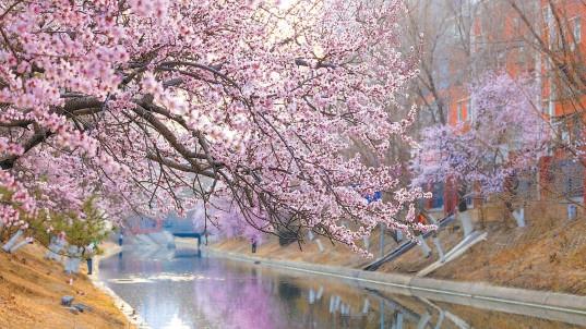 随着春意渐浓,北京各地繁花竞放,在朝阳区二道沟河六里屯段两岸,一株株山桃花竞相开放,这里也迎来一年中最佳的赏花时节。