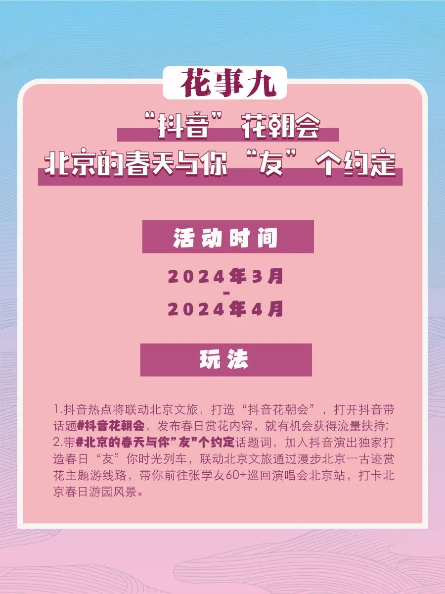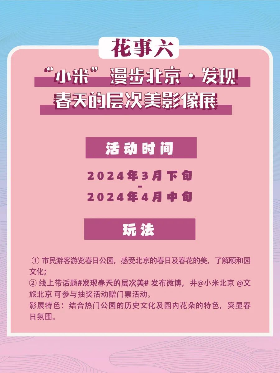 开门迎春,九大花事营造新场景。草长莺飞,丝绦拂堤,春花连接着对诗和远方的向往,“花开不败,游兴不散”,北京开门迎春九大花事邀请游客市民,漫步春日北京,慢赏灼灼春华。