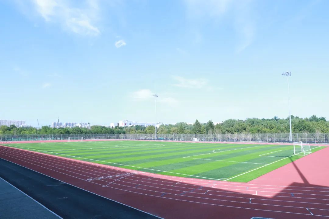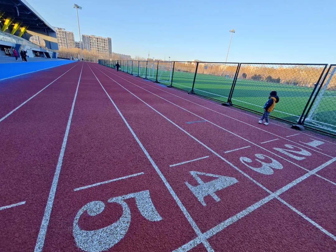 配置了六道塑胶跑道