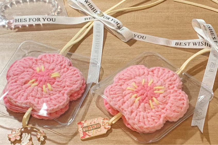 清明时节,古代有祭祀、踏青、赏花等习俗,本次活动以赏花为开端,带领大家动手制作桃花织片挂件,让参与者了解钩针编织艺术,体验手工钩织带来的乐趣。