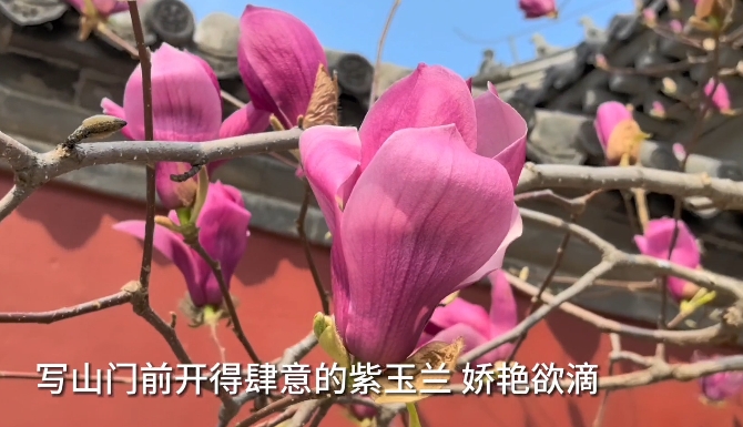 如果写清明踏青,一定要写红螺寺。写山门前开得肆意的紫玉兰,娇艳欲滴;写花墙下五彩斑斓的三角梅花瀑,狂放绚烂;写红螺泉上,跳石块的孩子,步步高升;写观音山中,穿行而下的滑车,风驰电掣。清明,踏青赏花去~