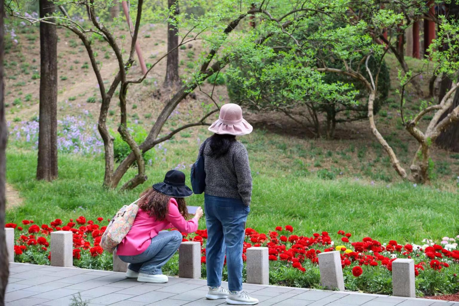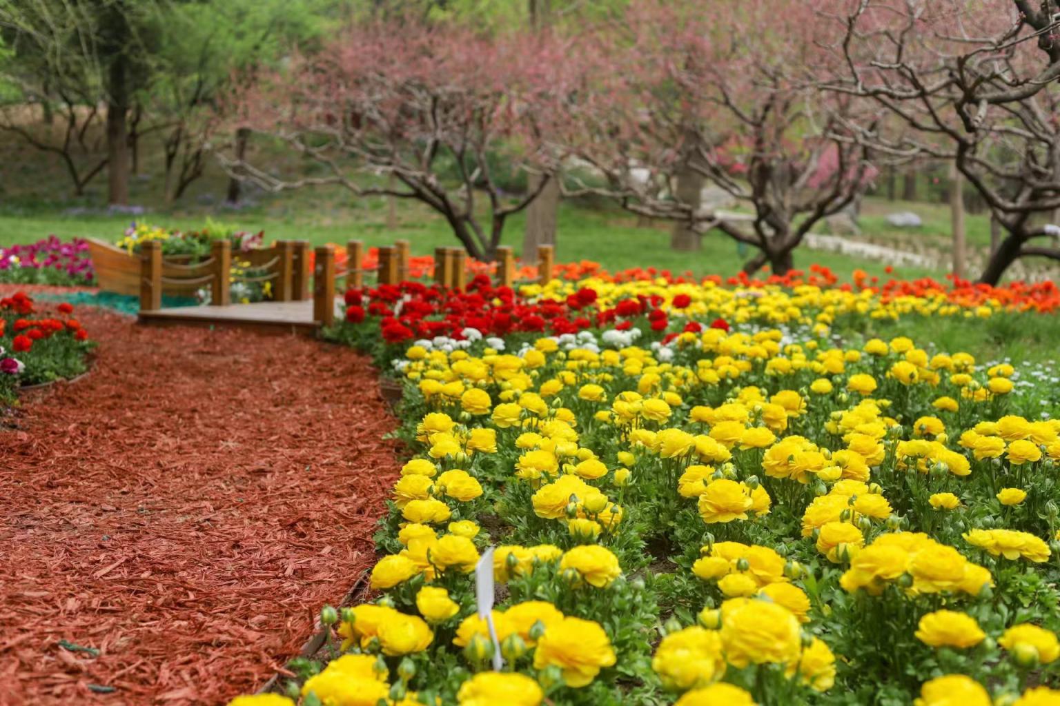 香山公园6000余株花毛茛已经完成景观布置。今年,整体花茎平均缩短3至5厘米,花期预计延长两周时间,花色也更加娇艳欲滴,为游客踏青赏花带来更佳的观赏效果。