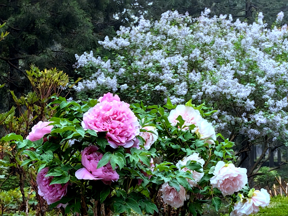 漫步园中,牡丹与花毛茛、木茼蒿等地栽应时花卉和丁香、海棠等春季观赏植物相互辉映,构成了一幅美丽的春日图景。