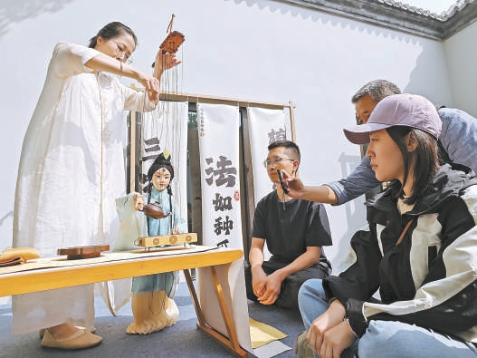 昨 天,福建宁德非遗文化代表柘荣提线木偶在八大处公园进行了茶艺展示。本报记者吴镝摄