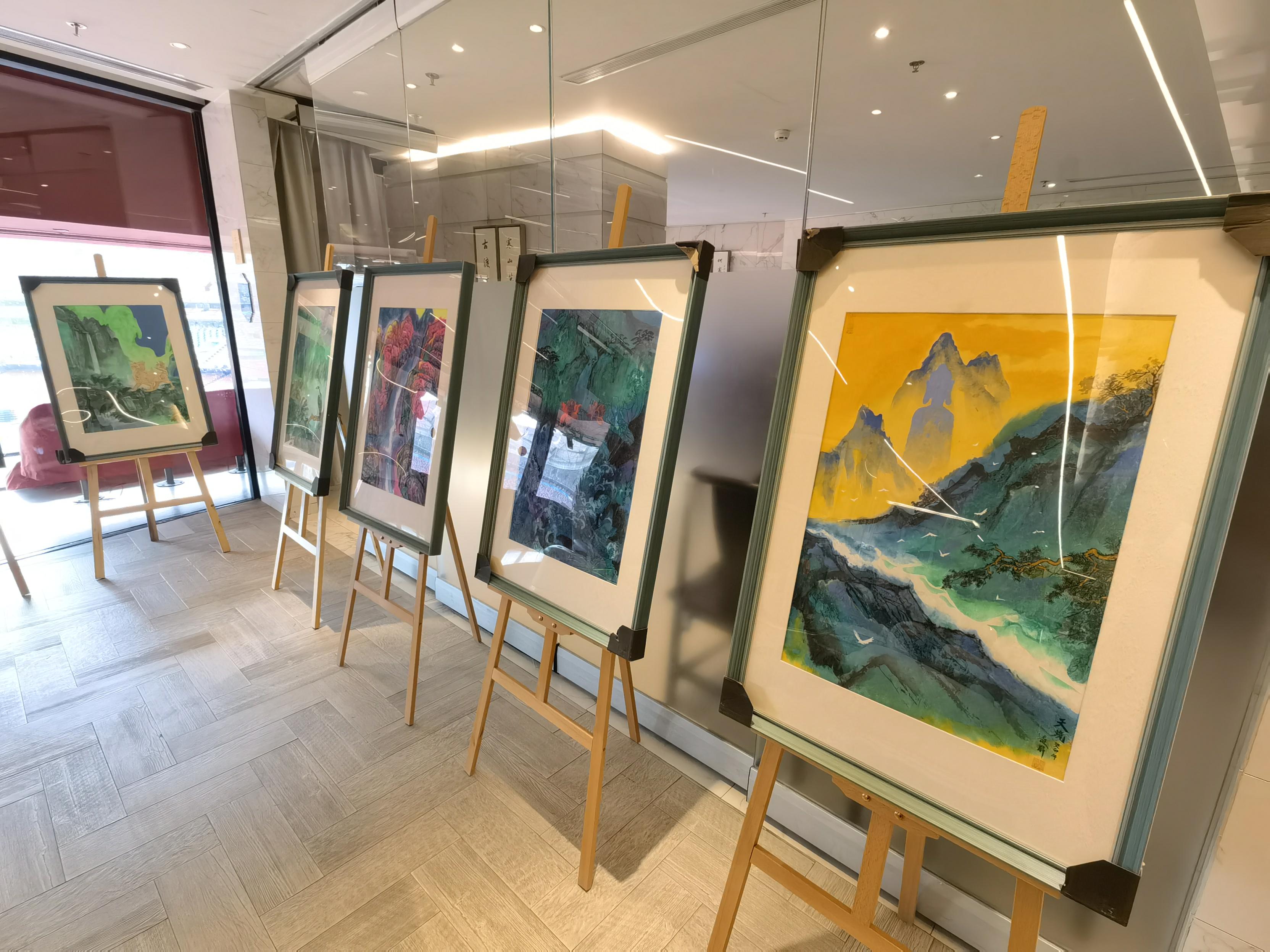“此次展览展出的作品,总体以山水画为主,创造出未来式的中国山水是我追求的方向;与此同时,展览也呈现了我创作的一些人物画,体现出新的视觉风格。”在展览的开幕式上,权迎升介绍了自己的艺术探索心路历程。“古往今来,前人已经把山水艺术推向一个又一个高峰。这些年来,我走访了很多名山大川,看到了许多东方雄浑壮丽的山水景象。我将其与幻想世界进行了融合,用赛博朋克的色彩语言进行了创作,所以诞生了这些具有未来科技感的山水画。”