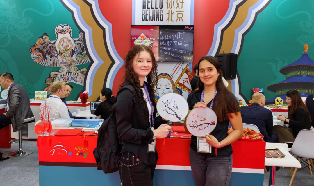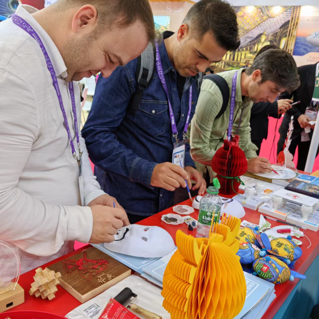 展会现场通过播放“北京新发现”主题短视频,发放北京会奖旅游资源明信片、144小时过境免签折页、北京非遗手册等宣传品,向企业重点宣传了京津冀144小时过境免签政策以及免签入境政策。组织买家参与福卡书写,团扇制作、脸谱绘制、兔爷拓印、投壶等活动,展示了北京独特的文化魅力,活跃了展台气氛,也拉近了参展企业与国际买家之间的距离。