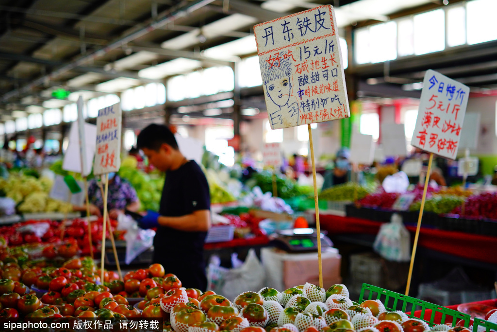5月15日,位于海淀区羊坊店站东的农贸市场内热闹非凡,不少摊位上那些专属于瓜果蔬菜的“烟火文学”,让菜市场充满了青春气息。
