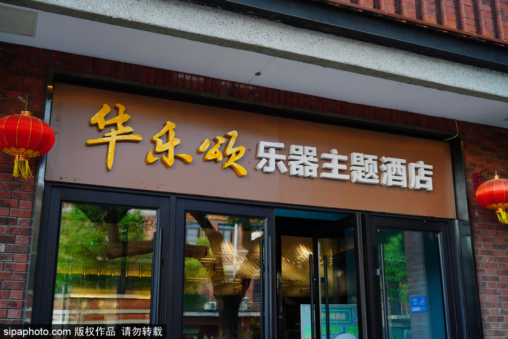 华乐颂乐器主题酒店位于西安门大街。据了解,该酒店前身为主营中西乐器、音像资料等的清华乐器和速8酒店等13家小门店,建筑外立面较为杂乱。走进一层大堂,大到钢琴,小到装饰挂件,都和音乐相关,就像星光闪耀的舞台。