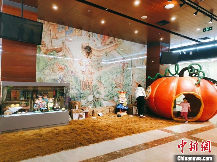 展厅内,迎面而来的蓝天、黑土和黄色高粱,勾勒出东北秋收的生动画面。展览展示图画书作家九儿的绘画、雕塑、陶瓷及出版物、手稿、衍生品等。生动逼真的大南瓜屋、可爱的兔儿妹妹、从大兴安岭森林运来的桦皮船……在传递创作者对生活的热爱和对世界的理解同时,也让孩子们仿佛置身童话世界,感受黑土地的气息。